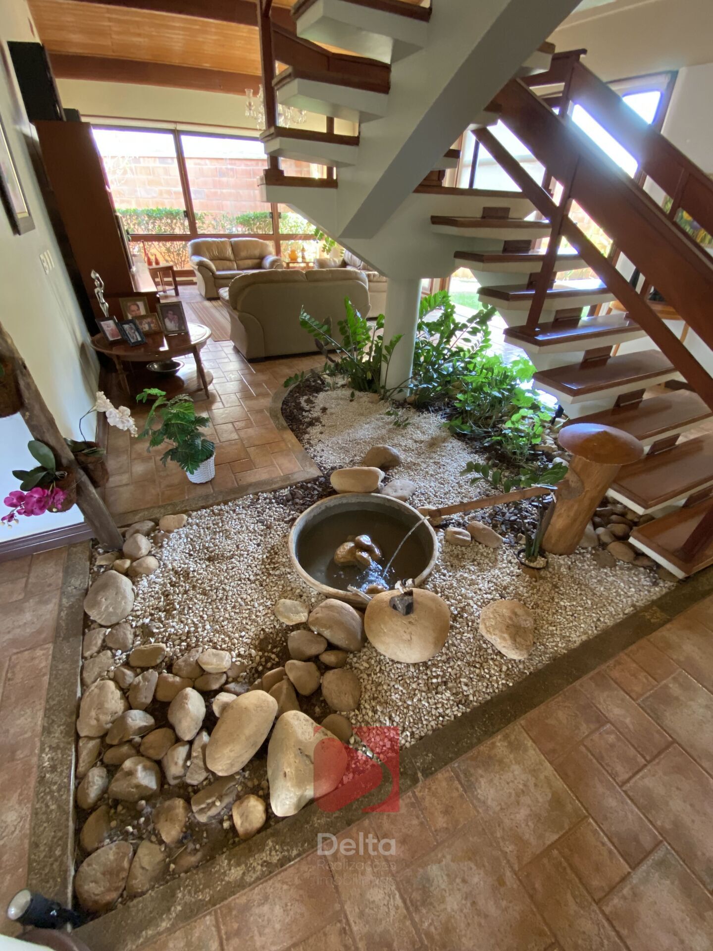 No térreo, uma série de salas em estilo rústico, o que garante muito conforto e aconchego a este imóvel. O madeiramento está com qualidade impecável, e a vista para o jardim é um capítulo à parte.