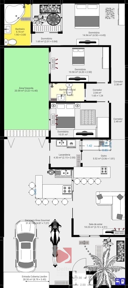 3 Dormitórios, sendo 1 suíte1 Banheiro1 VagaGaragem Coberta1 Sala de TV1 Cozinha1 Sala de jantar1 Área de serviço